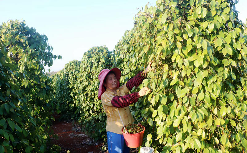 農戶正在田間采收胡椒。海墾熱作集團供圖